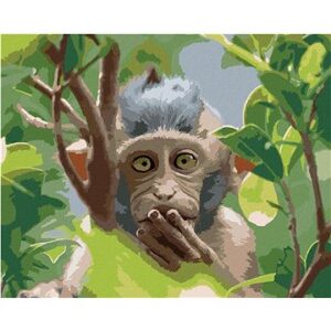 Opica v prírodnom lese, 40 × 50 cm, plátno napnuté na rám