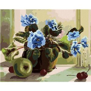 Diamondi – Diamantové maľovanie – MODRÉ KVETINY A OVOCIE, 40 × 50 cm, vypnuté plátno na rám