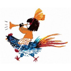 Dievčatko sediace na kohútovi, 40 × 50 cm, plátno napnuté na rám