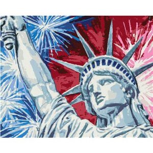Socha Slobody a ohňostroj, 80 × 100 cm, bez rámu a bez napnutia plátna