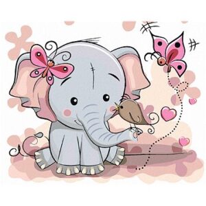 Diamondi – Diamantové maľovanie – MALÝ SLON S MOTÝĽMI, 40 × 50 cm, vypnuté plátno na rám