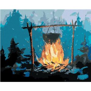 Kempovanie v lese, 40 × 50 cm, plátno napnuté na rám