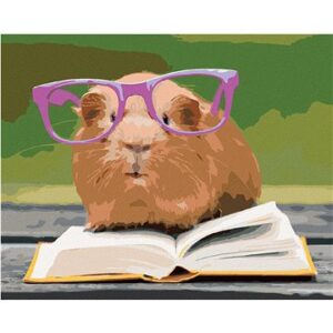 Morča v okuliaroch číta knižku, 80 × 100 cm, plátno napnuté na rám