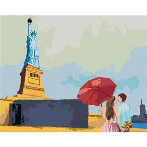 Socha Slobody a zamilovaný pár, 80 × 100 cm, plátno napnuté na rám