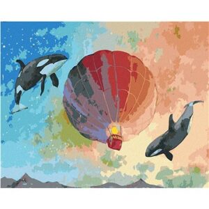 Lietajúce kosatky s teplovzdušným balónom, 40×50 cm, vypnuté plátno na rám