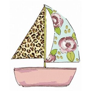Loď s leoparďou a kvetinovou plachtou (Haley Bush), 80 × 100 cm, plátno napnuté na rám