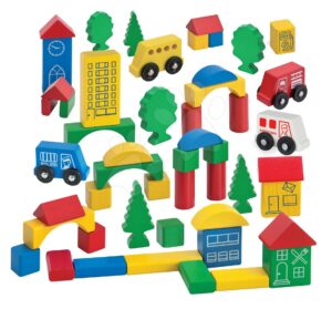 Drevené farebné kocky Wooden City Blocks Eichhorn vzorované s potlačou 50 ks v dóze od 12 mes