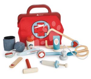 Drevená lekárska taštička Doctor’s Bag Tender Leaf Toys so zdravotnými pomôckami rúškom a náplasťami