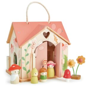 Drevený lesný domček Rosewood Cottage Tender Leaf Toys s hojdačkou záhradkou a 4 postavičkami