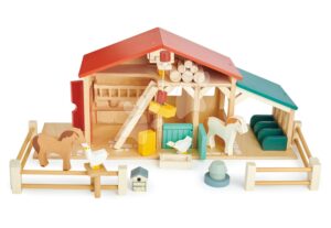 Drevená farma s ohradou Tender Leaf Toys Farm s domácimi zvieratkami a ich chlievikmi