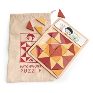 Drevená mozaika Patchwork Quilt Puzzle Tender Leaf Toys hnedé trojuholníky 32 dielov 4 farby