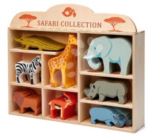 Drevené divoké zvieratká na poličke 24 ks Safari set Tender Leaf Toys krokodíl slon zebra antilopa žirafa nosorožec hroch lev