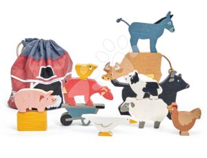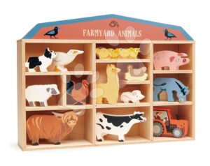 Drevené domáce zvieratká na poličke 13 ks Farmyard set Tender Leaf Toys
