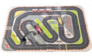 Drevené pretekárske autá Formula One Racing Playmat Tender Leaf Toys na plátenej dráhe a s doplnkami