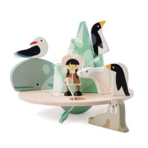 Drevená polárna kryha so zvieratkami Balancing Polar Circle Tender Leaf Toys a eskimákom na rybách