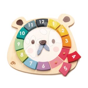 Drevené hodiny s medveďom Bear Colour Clock Tender Leaf Toys závesné s 12 farebnými číslami