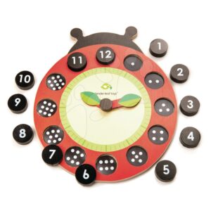 Drevené magnetické hodiny s lienkou Ladybug Teaching Clock Tender Leaf Toys závesné s 12 bodkovanými číslami