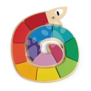 Drevený stočený had Colour Me Happy Tender Leaf Toys 12 farebných tvarov so znakmi