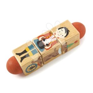 Drevený točiaci sa valec Circus Twister Tender Leaf Toys s maľovanými cirkusantmi od 18 mes