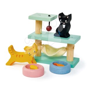 Drevené mačičky Pet Cats Set Tender Leaf Toys s hracím kútikom a miskami
