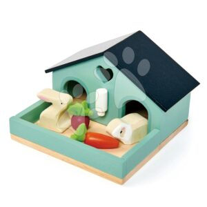 Drevené zajace v domčeku Pet Rabit Set Tender Leaf Toys s mrkvou