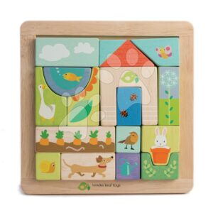 Drevené kocky na záhrade Garden Blocks Tender Leaf Toys s maľovanými obrázkami 24 dielov od 18 mes