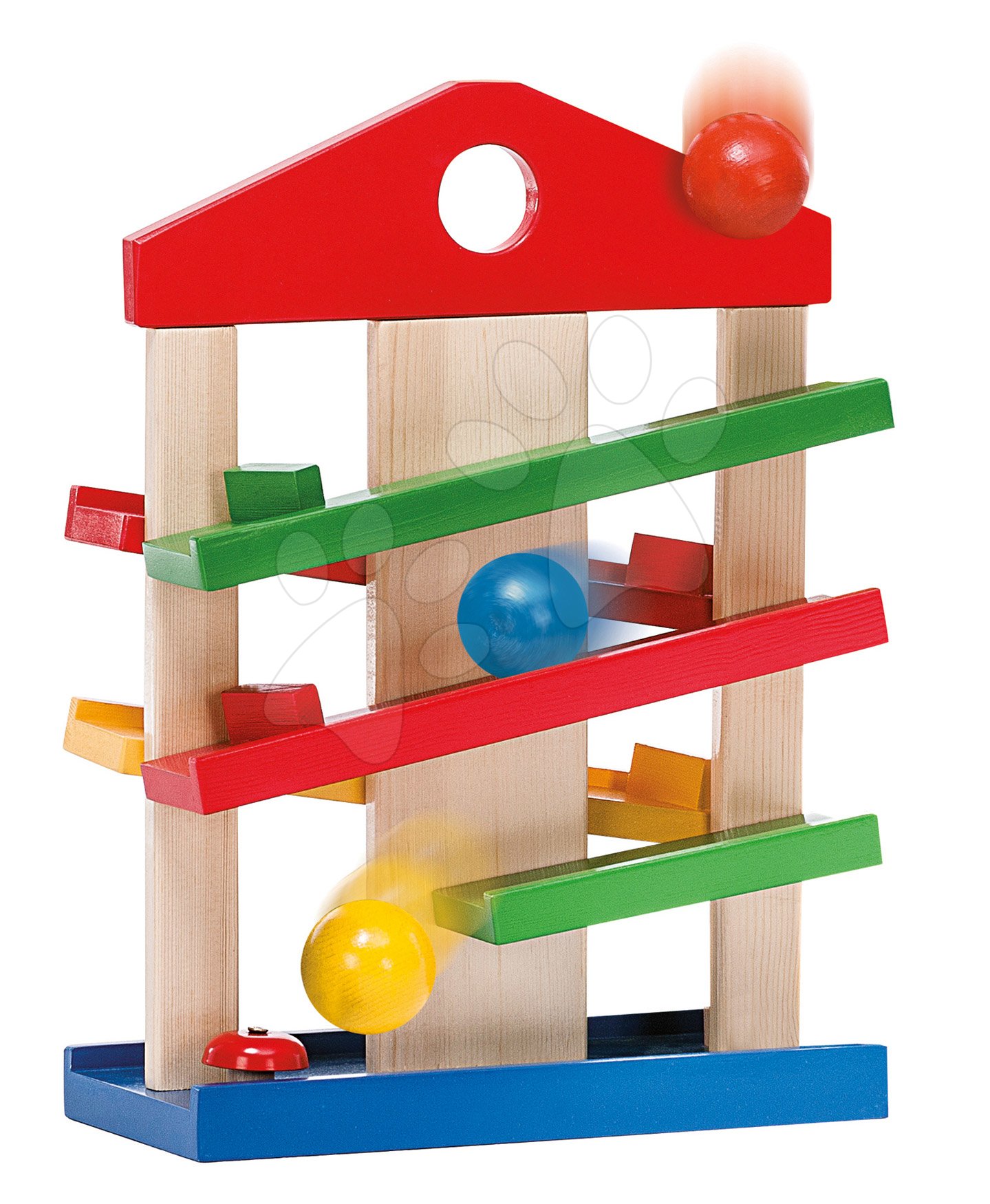 Drevená guličková dráha Runway od nemeckého výrobcu Eichhorn je vynikajúci darček pre všetky deti už od 12 mesiacov. Pestrofarebná dráha je vyrobená z prvotriedneho lipového dreva, rozjasní a rozveselí každú detskú izbičku. Chlapci aj dievčatá sa výborne zabavia s 5-poschodovou dráhou, po ktorej budú spúšťať žltú, modrú a červenú loptičku. Na konci dráhy sa nachádza červený zvonček, ktorý veselo zacinká pri dopade loptičky. Nadčasová hra pomôže deťom rozvíjať jemnú motoriku, priestorové videnie a učia sa logicky premýšľať. Vo vrchnej časti dráhy je otvor, vďaka ktorému sa dá dráha ľahko prenášať.