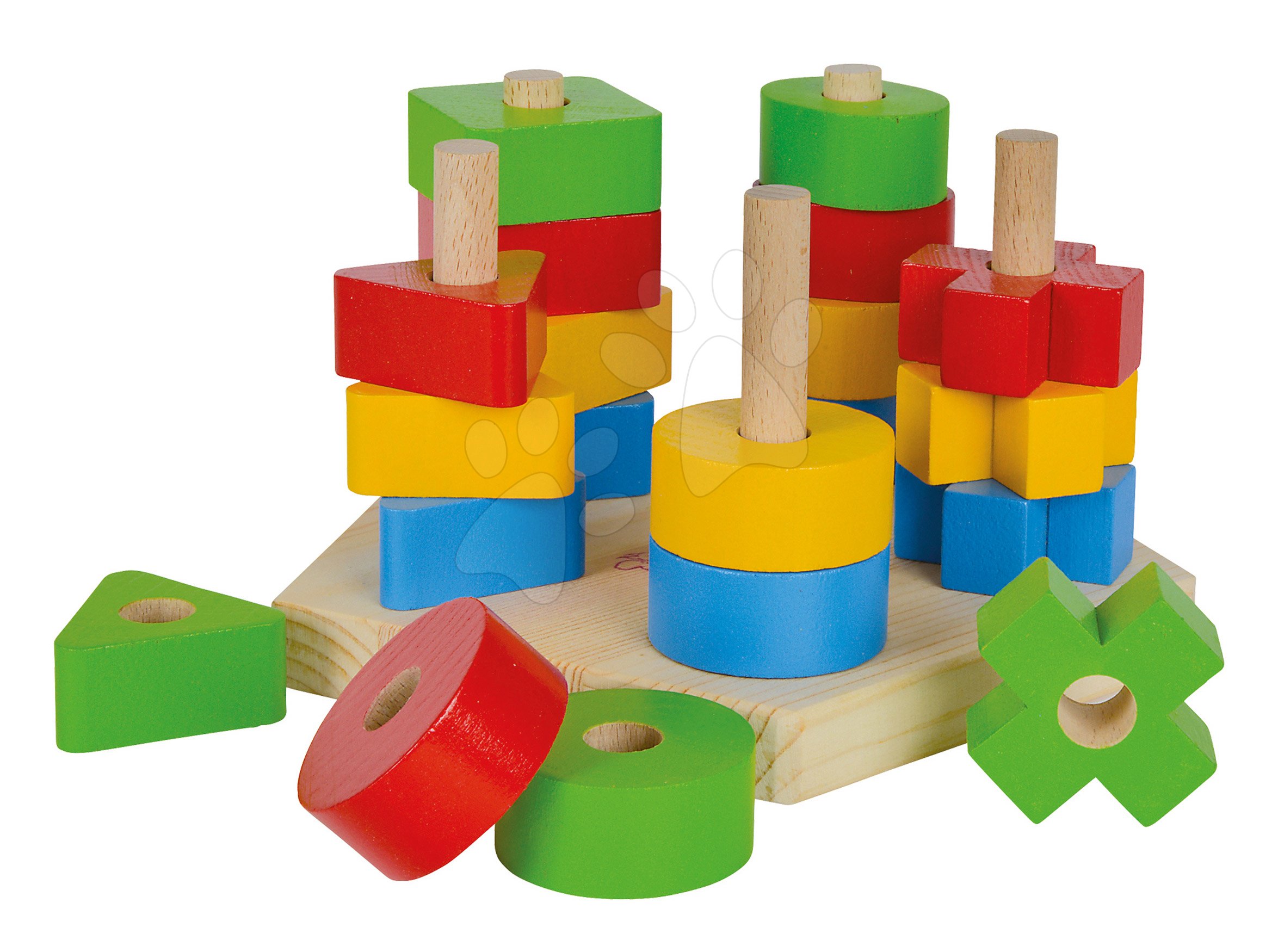 Drevená skladačka veža Stacking Toy Eichhorn s 5 rôznymi farebnými tvarmi 21 dielov od 12 mes