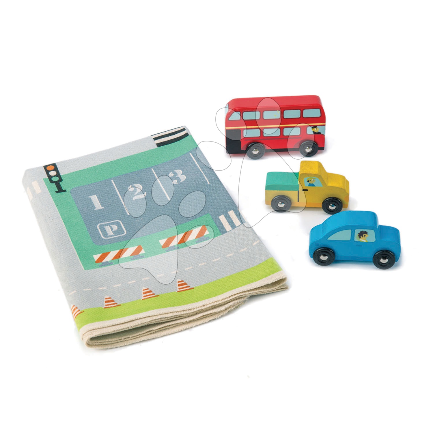Drevené mestské autá Town Playmat je originálny darček pre chlapcov a dievčatá od 3 rokov. Originálna 4-dielna sada obsahuje nádhernú hraciu podložku z plátna, na ktorej po rozložení nájdu deti mapu mesta, na ktorú si môžu uložiť poschodový autobus a 2 osobné vozidlá, s ktorými zažije veľa zábavy. Malí šoféri sa naučia jazdiť po cestách, dodržiavať značky, voziť pasažierov v autobuse a dávať prednosť v jazde. Štýlovú drevenú sadu navrhli poprední dizajnéri Tender Leaf Toys priamo vo Veľkej Británii a na výrobe sa podieľali skúsení remeselníci.