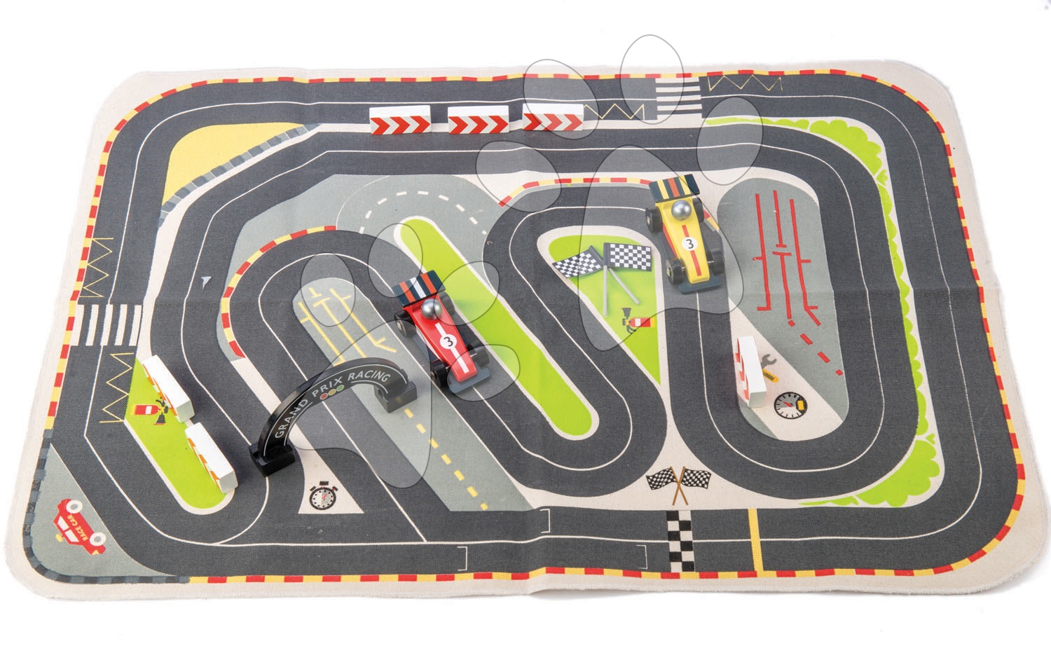 Drevené pretekárske autá Formula One Racing je špičkový darček pre chlapcov a dievčatá od 3 rokov. Originálna 12-dielna sada obsahuje nádhernú hraciu podložku z plátna, na ktorej po rozložení nájdu deti pretekársku dráhu, na ktorú si môžu poukladať 2 formule, s ktorými budú môcť pretekať na okruhu. Súčasťou sady sú aj smerové mantinely, označenie štartu Grand Prix Racing a nechýbajú ani vlajky, ktorými sa spustí závod. Modernú drevenú sadu navrhli poprední dizajnéri Tender Leaf Toys priamo vo Veľkej Británii a na výrobe sa podieľali skúsení remeselníci.
