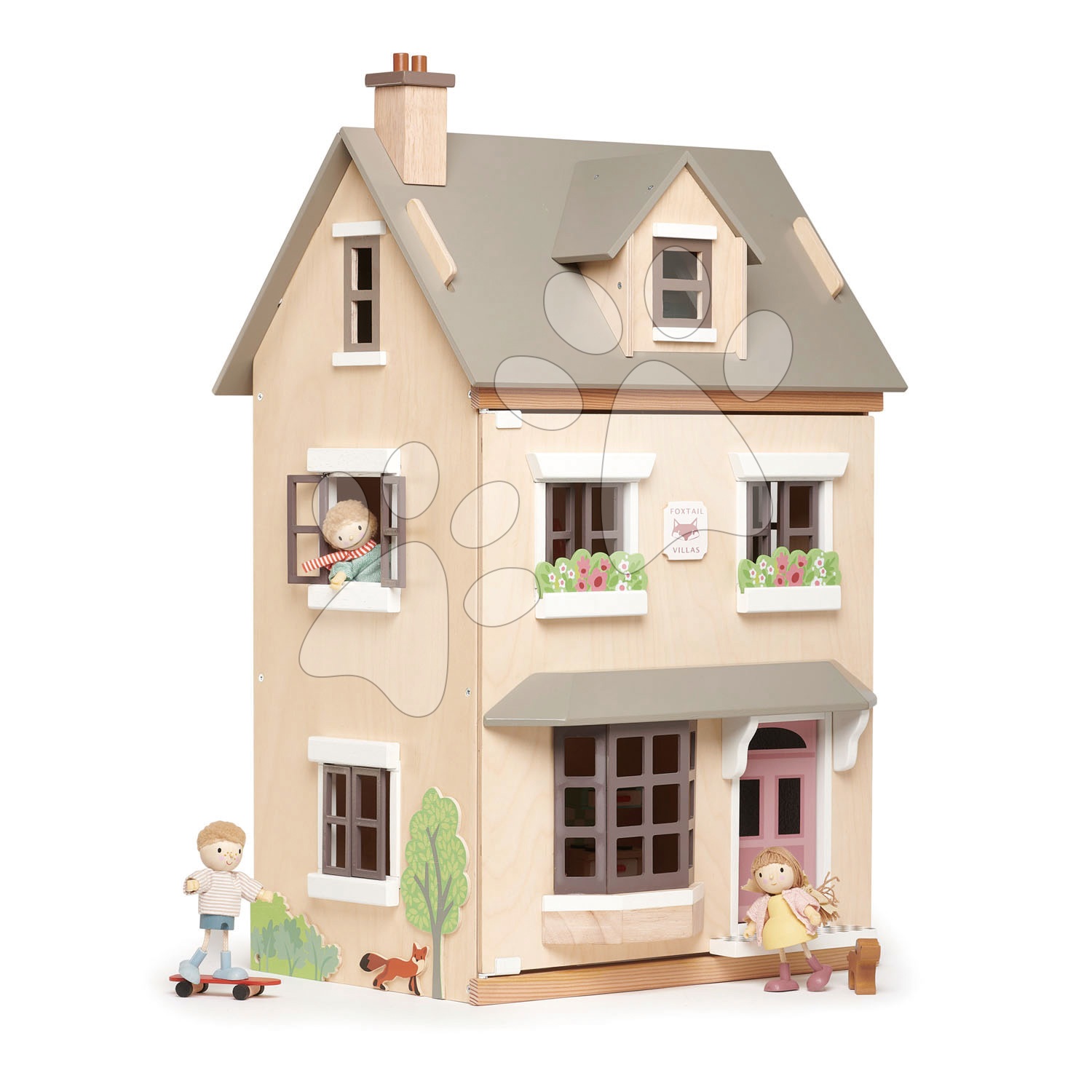 Drevený mestský domček pre bábiku Foxtail Villa od špičkových dizajnérov hračiek Tender Leaf Toys, ktoré navrhujú priamo vo Veľkej Británii poteší každé dieťa od 3 rokov. Štýlový a vysoký 3-poschodový domček v sebe skrýva až 3 priestranné izby, ktoré majú nádherné vzorované podlahy. Okná na izbách sa dajú otvárať, rovnako ako aj vchodové dvere v príjemne ružovej farbe a na fasáde domčeka deti objavia pekné kvetináče, stromček, krík a samozrejme, nechýba ani veselá líška. Časť strechy je odnímateľná a predná časť domu sa otvára do jednej strany, takže má dieťa ľahký prístup do všetkých jeho častí, ktoré si môže vybaviť dreveným nábytkom a doplnkami. V tejto úžasnej 12-dielnej súprave nájdu deti aj moderný gauč, stoličku, stôl, sporák, drez, posteľ s prikrývkou, šatník, lampu, vybavenie do kúpeľne a nechýba ani splachovací záchod.