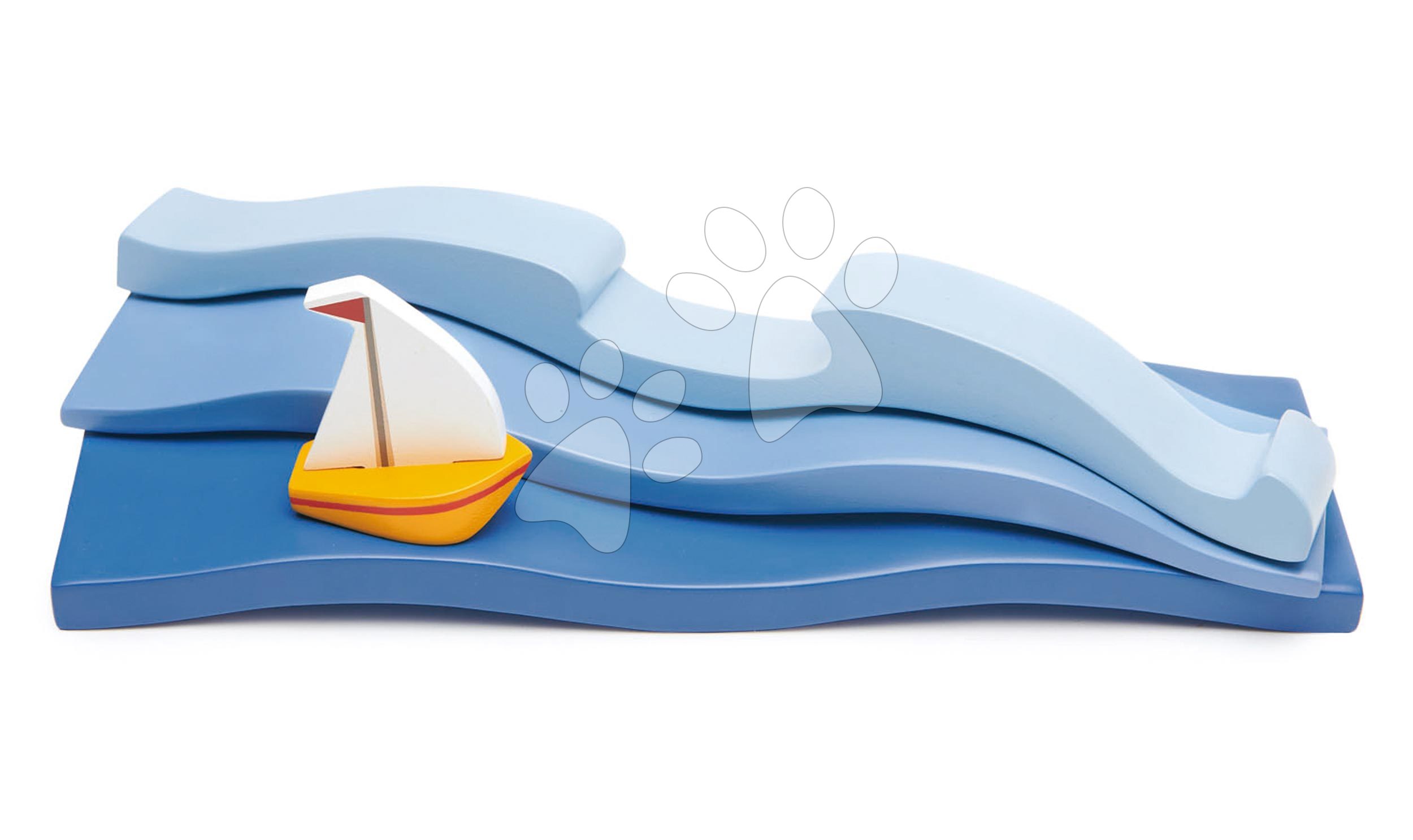 Drevený oceán Blue Water predstavuje vynikajúci darček pre všetky deti už od 3 rokov. Tešiť sa môžu na 3 morské vlny, ktoré chlapcom a dievčatám pripomínajú more alebo oceán, a taktiež aj žltú plachetničku. Morskú súpravu z dreva využijú vaši najmenší pri hrách s domčekmi, vláčikodráhou alebo sa s ňou hrajú samostatne. Jemné a oblé tvary z prvotriedneho dreva pomôžu rozvíjať u detí jemnú motoriku, fantáziu a predstavivosť. Súprava ozdobí detskú izbičku a vytvorí útulnú atmosféru. Túto nadčasovú sadu navrhli špičkoví dizajnéri Tender Leaf Toys priamo vo Veľkej Británii a na výrobe sa podieľali zruční remeselníci.