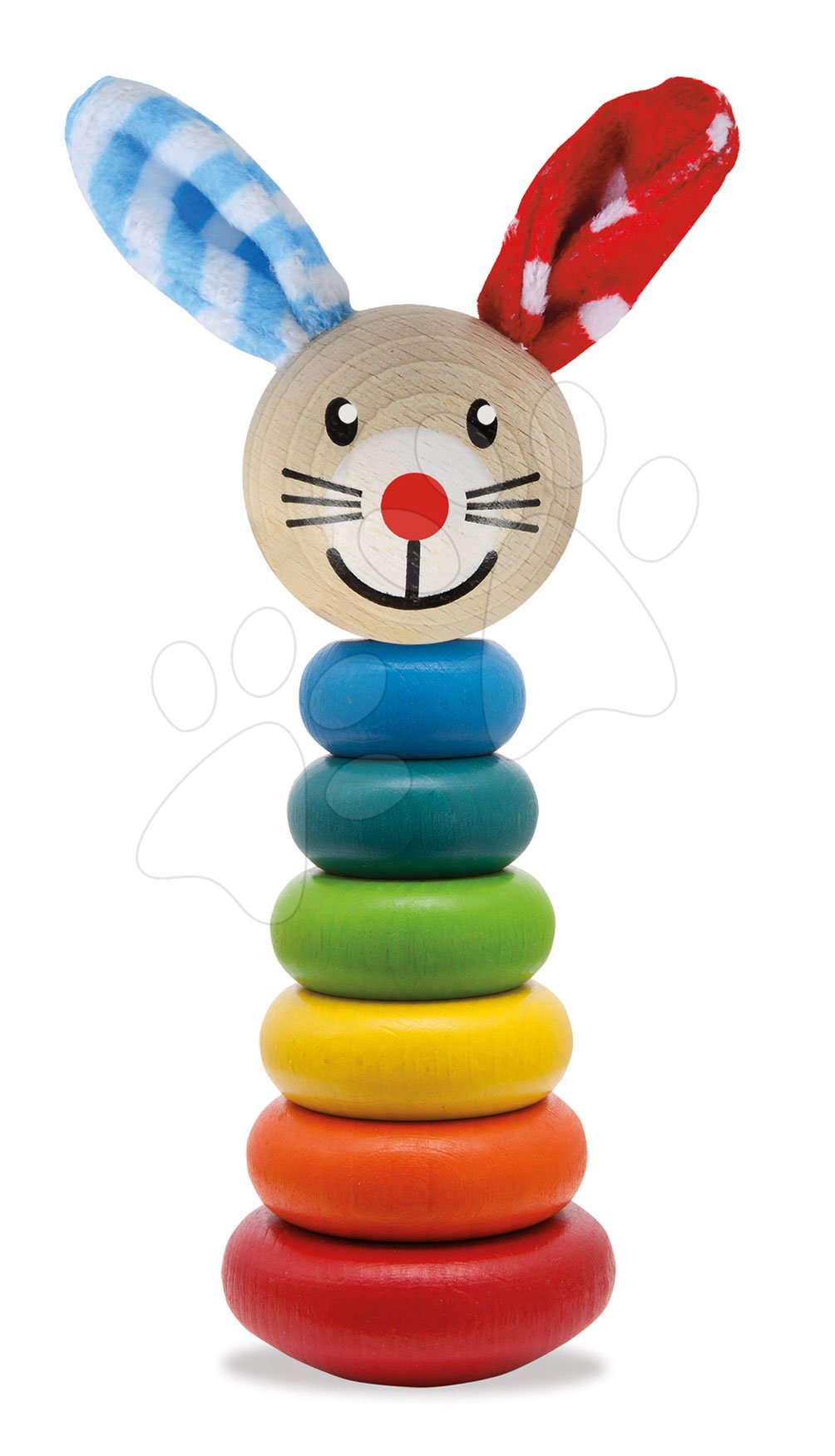 Drevený zajačik Stacking Rabbit od nemeckého výrobcu Eichhorn je originálny darček pre chlapcov aj dievčatká už od 12 mesiacov. Skladací zajačik vyrobený z najkvalitnejšieho bukového dreva pomáha vašim najmenším s rozvojom fantázie a predstavivosti. Telo zajačika tvorí 6 farebných krúžkov, ktoré sa dieťa učí poskladať od najväčšieho po najmenšie. Veselý zajačik má ušká vyrobené z jemného plyšu. S touto skvelou hračkou si deti precvičia jemnú motoriku, precvičia si rozpoznávanie jednotlivých farieb a výborne sa bavia pri skladaní obľúbeného zvieratka. Nadčasová skladačka zajačika s výškou 18 cm vydrží vo vašej rodine po dlhé roky.