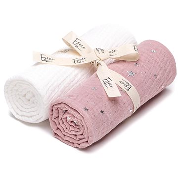 ESECO mušelínové pleny, White Pink Stars 2 ks
