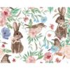 Králiky a vtáčiky v kvetinovej kompozícii, 80 × 100 cm, bez rámu a bez napnutia plátna