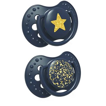 Cumlík LOVI cumlík silikónový dynamický Stardust 18 mes.+ 2 ks, modrý:Máte v úmysle zabezpečiť pre vaše bábätko cumlík, vďaka ktorému bude v pokoji? Cumlík Lovi je vyhovujúci pre deti aj novorodencov. 18 mesiacov. Tvar cumlíka je symetrický v dolnej aj hornej časti, vďaka čomu sa pri saní vyvíja nízky tlak na podnebie bábätka a prispieva k správnemu vývoju zúbkov a čeľuste. Silikónový cumlík je priesvitný, chuťovo neutrálny a odolný. Neobsahuje BPA, preto je zdravotne spôsobilý. Súčasťou cumlíka je aj krúžok na vybratie, teda cumlík možno dieťaťu bez problému vybrať. Luxusný vzhľad cumlíka sa vám bude veľmi páčiť. Podstatné parametre cumlíka LOVI cumlík silikónový dynamický Stardust 18 mes.+ 2 ks, modrý Bezpečný cumlík, vďaka ktorému ľahko bábätko utěšíte Vhodné pre deti od 18 mesiacov Tvar cumlíka Lovi: symetrický cumeľ (ortodontický) Materiál: silikónový Nie je zdraviu škodlivý, je bez BPA