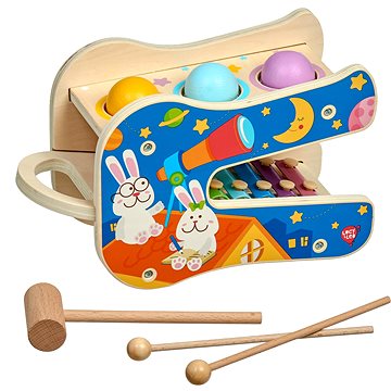 Hudobná hračka Lucy & Leo 250 Hviezdne melódie, drevená hracia sada s xylofónom a kladivkom:Dvojposchodová hracia súprava Lucy& Leo 250 očarí svojou interaktivitou nielen deti, ale aj dospelých. Drevená hračka Hviezdne melódie obsahuje xylofón aj zatĺkačku v jednom. Horné poschodie sa pýši tromi otvormi, do ktorých sa umiestnia 3 drevené farebné gule. Tie sa pomocou kladivka zatlčú skrz diery priamo na xylofón, ktorý pri ich dopade začne vydávať jemné zvuky. Xylofón možno tiež vytiahnuť a využívať ho samostatne. Hviezdne melódie rozvíjajú hudobný sluch a koordináciu detí.Kľúčové vlastnosti hudobnej hračky Lucy & Leo 250 Hviezdne melódieDrevená interaktívna hračka Lucy & Leo 250 Hviezdne melódieHerná sada obsahuje xylofón aj zatĺkačkuNa zatĺkanie sú určené 3 drevené farebné guleXylofón možno vytiahnuť a používať aj samostatneHračka Hviezdne melódie podporuje u detí hudobný sluch aj koordináciuHračka vhodná pre dievčatá aj chlapcov od 3 rokovRozmer súpravy: 24 × 17 × 14 cmRozmer xylofónu: 27 × 11 × 3 cmDĺžka paličiek aj kladivka: 20 cmPriemer gulí: 4,5 cm