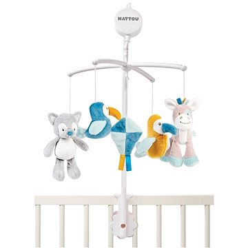 Kolotoč nad postieľku NATTOU hudobný kolotoč Tim & Tiloo 0 mes.+: Spríjemnite bábätku zaspávanie aj prebúdzanie s hudobným kolotočom Nattou Tim&Tiloo. Hudobný kolotoč Nattou hrá príjemnú uspávanku La-Le-Lu, zatiaľ čo plyšoví kamaráti sa otáčajú a pohybujú do rytmu hudby. Deti poteší líška, somár a tukany. Kolotoč ľahko pripevníte nad detskú postieľku alebo kolísku. Zvieratká sú veľmi mäkké a hebké, môžete ich zložiť a vyprať v práčke. Nattou Tim&Tiloo rozvíja detské zmysly a je vhodný pre deti už od narodenia. Kľúčové vlastnosti kolotoča nad postieľku Nattou Tim&TilooHudobný kolotoč Nattou Tim&Tiloo pre chlapcov aj dievčatáHrá príjemnú uspávanku La-Le-LuPlyšoví kamaráti sa otáčajú a pohybujú do rytmu hudbyDeti poteší líška, somár a tukanySpríjemní deťom zaspávanie aj prebúdzanieKolotoč Nattou ľahko pripevníte nad detskú postieľku alebo kolískuZvieratká sú hebké a mäkké, dajú sa prať v práčkeRozvíja detské zmyslyKolotoč Nattou Tim&Tiloo je vhodný pre deti od narodenia Materiál zvieratiek: 100 % polyester
