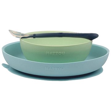 Nattou Jedálenský set bez BPA zeleno-modrý 3 ks
