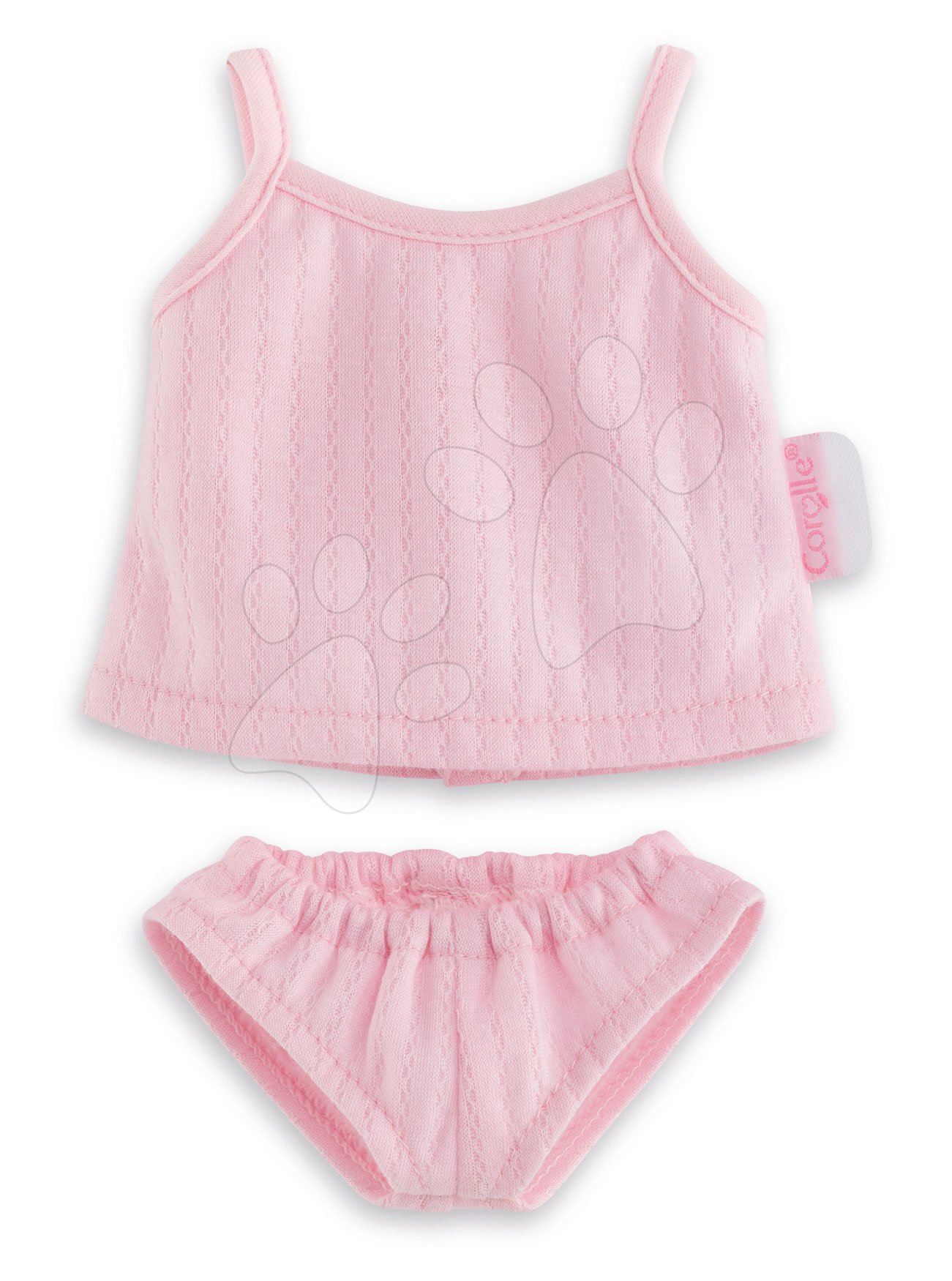Rozkošné oblečenie Underwear pre bábiku Mon Grand Poupon z dielne francúzskej značky Corolle premení každú hru s bábikou na nezabudnuteľný zážitok. Ako jediný eshop na trhu oblečieme bábiku vášho dieťatka do tejto krásnej súpravy spodnej bielizne. Prekrásne tielko a nohavičky pre bábiku v jemnej ružovej farbe vyzerajú na nerozoznanie od skutočného oblečenia. Krásna súprava spodnej bielizne určená pre bábiku Mon Grand Poupon s veľkosťou 36 cm má dôkladne prepracované a deti ju môžu s radosťou kombinovať s ostatnými módnymi doplnkami značky Corolle.