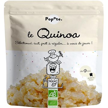 Príkrm POPOTE Výberová predvarená BIO quinoa 100 g: Dokonale vyladená chuť a ingrediencie prvotriednej kvality sa ukrývajú v detských príkrmoch od francúzskej značky Popote. Ich balenie výberovej predvarenej BIO quinoy uspokojí aj tie najnáročnejšie chuťové poháriky najmenších stravníkov. Obsahuje semienka výhradne z ekologického poľnohospodárstva a v 100 % bio kvalite. A keďže je príprava quinoa zrniečok časovo náročná, Popote vám ich prináša už vo fáze, kedy je možné ich prakticky okamžite podávať. Stačí obsah iba ohriať a pridať ďalšie obľúbené suroviny. Príkrm pre deti Popote Výberová predvarená BIO quinoa je zabalený v ekologickom obale a je vhodný pre deti od ukončeného 9. mesiaca. Kľúčové vlastnosti detského príkrmu Popote Výberová predvarená BIO quinoaVyladené chuť a ingrediencie prvotriednej kvalityPríkrm pre deti Popote Výberová predvarená BIO quinoa je v 100 % bio kvaliteObsahuje starostlivo vybrané a predvarené semienka quinoyBalenie stačí iba ohriať a pridať obľúbené surovinyZabalené v ekologickom vreckuPríkrm pre deti Výberová predvarená BIO quinoa je pre deti od ukončeného 9. mesiaca Tip na jednoduchú večeru pre deti od 9 mesiacov: Na drobné kocky nakrájajte 1/4 cukety a 1/4 baklažánu, povarte, pridajte pár kvapiek kvalitného olivového oleja, pridajte 1/2 Popote paradajkového pyré, pridajte 1/2 vrecka ohriatej Popote quinoy a máte hotovú skvelú večeru pre pokojný spánok. Skladovanie: Pred otvorením skladujte pri izbovej teplote. Obal bez bisfenolu A. Pre zachovanie vlastností balené v ochrannej atmosfére. Príprava: Premasírujte obsah vrecka, otvorte ho na 2 cm a vložte ho na 30 sekúnd pri strednom výkone (600 W) do mikrovlnnej rúry. Pred podávaním dieťaťu skontrolujte teplotu pokrmu. Vrecko možno po otvorení, ak je dobre utesnené, uchovávať v chladničke po dobu 48 hodín. Zloženie: Voda, bio quinoa 35 %, extra panenský olivový bio olej 2 %Výživové hodnoty: Energetická hodnota: 580 Kj/138 KcalTuky: 2,8 g, z toho nasýtené mastné kyseliny: 0,4 gSacharidy: 22 g, z toho cukry: 1,1 gVláknina: 2,2 gBielkoviny: 5 gSoľ: 0,01 gSodík: 7 mg
