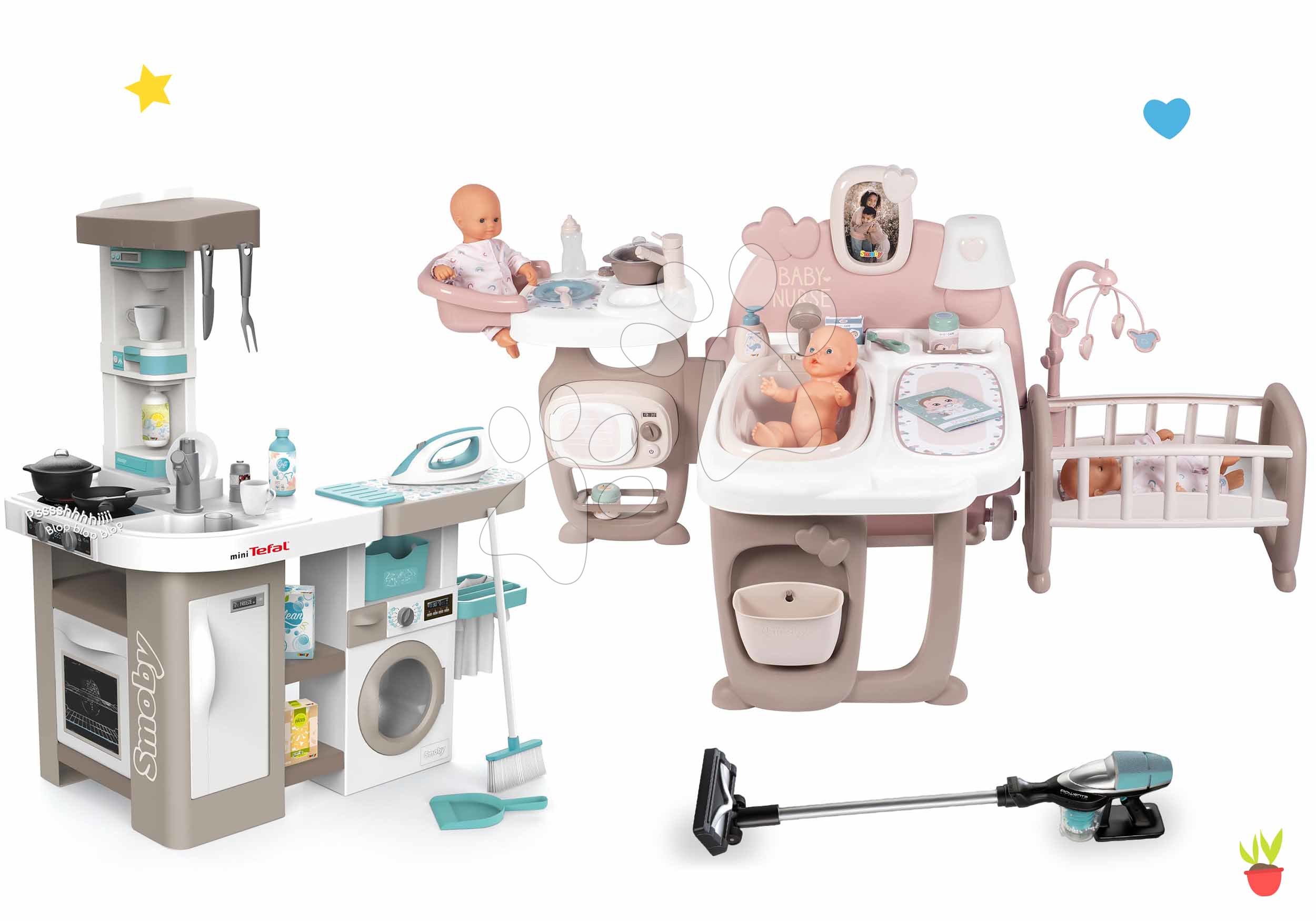 Kuchynka elektronická s práčkou a žehliacou doskou Tefal Cleaning Kitchen 360° Smoby so zvukmi a funkčnými spotrebičmi 36 doplnkov