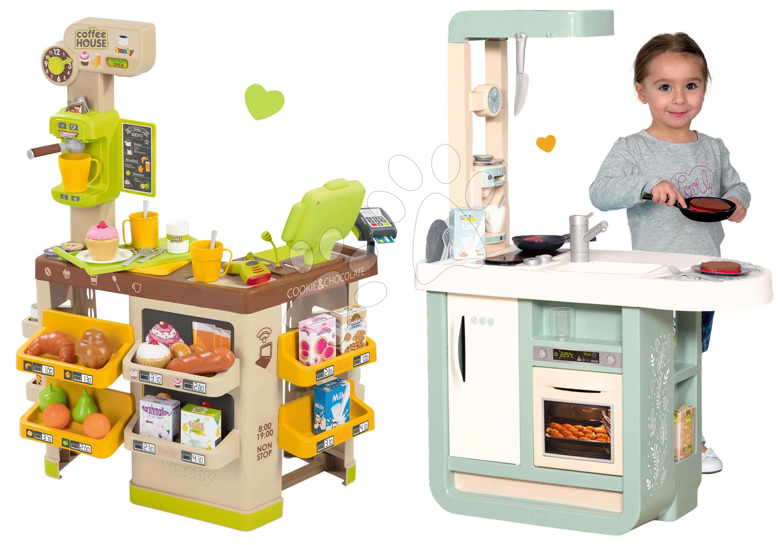 Kuchynka elektronická Cherry a kaviareň s Espresso kávovarom je vynikajúci darček pre chlapcov a dievčatá od 3 rokov. Sada hračiek za zníženú cenu poteší nielen deti, ale aj rodičov, ktorí výrazne ušetria. Hračky v sete spolu dizajnovo a farebne ladia, ozdobia každú detskú izbičku. Kamaráti aj súrodenci sa zahrajú na povolanie kuchárov a kaviarnikov, vďaka čomu sa približujú svetu dospelých a rozvíjajú si svoje logické myslenie, fantáziu a predstavivosť. Francúzsky Smoby už roky prináša deťom hračky najvyššej kvality s prvotriednym vzhľadom.