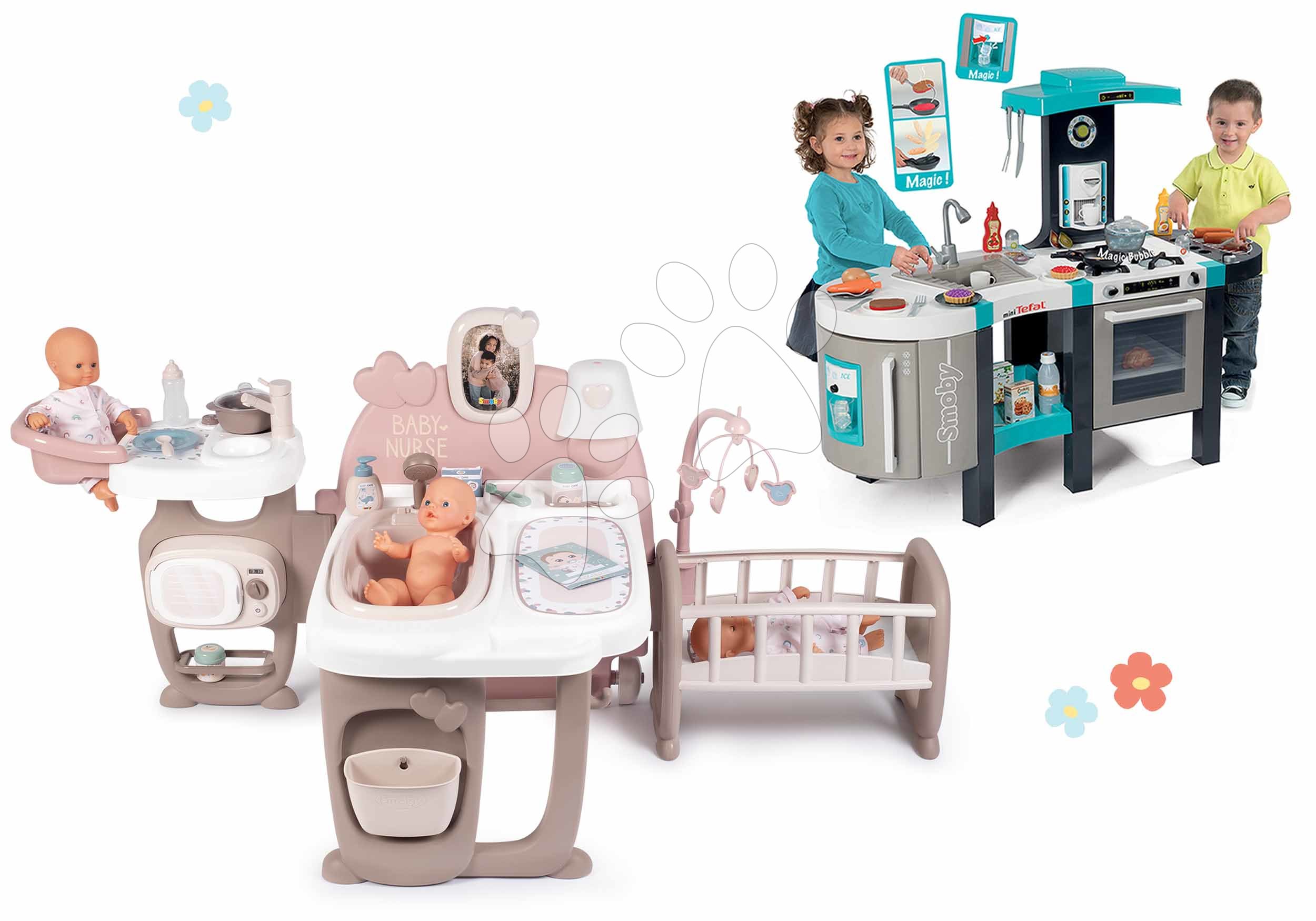 Elektronická kuchynka s bublaním a trojkrídlový domček pre bábiku predstavuje vynikajúci set hračiek pre deti od 3 rokov. Hračky v sade spolu dizajnovo a farebne ladia, vydržia vašim najmenším dlhé roky. S kuchynkou s magickým efektom bublania sa deti zahrajú na kuchárov a učia sa používať kuchynské spotrebiče, riady a príbory. Dievčatá poteší aj trojkrídlový domček, v ktorom sa zahrajú so svojou obľúbenou bábikou. Kreatívne hračky od francúzskeho výrobcu Smoby umožňujú deťom hravou formou sa priblížiť svetu dospelých a všestranne rozvíjajú ich schopnosti.