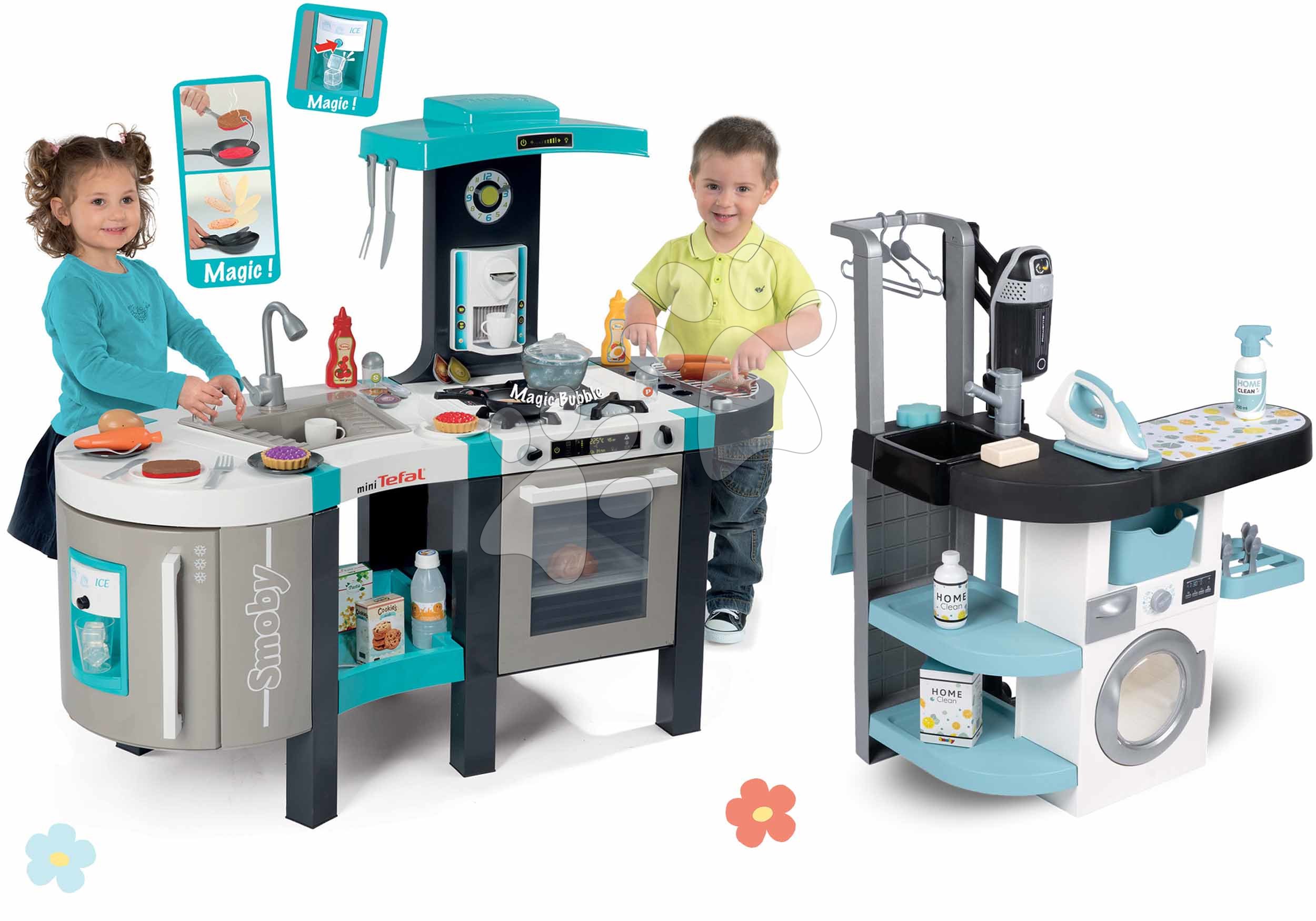 Elektronická kuchynka Tefal a práčovňa s vybavením ponúknu deťom od 3 rokov realistické zážitky pri hre na povolania. Hračky v sete spolu dizajnovo a farebne ladia, vydržia vašim najmenším dlhé roky. S kuchynkou s efektom bublania sa deti zahrajú na kuchárov a objavujú, ako správne používať rôzne kuchynské spotrebiče, riady a príbory. Práčovňa s práčkou, elektronickým vysávačom a žehličkou im umožní vyskúšať si domáce práce a hravým spôsobom sa približujú svetu dospelých a získavajú cit pre poriadok. So sadou hračiek sa deti zahrajú so svojimi kamarátmi a súrodencami, pričom si zlepšujú komunikačné schopnosti a upevňujú sociálne väzby.
