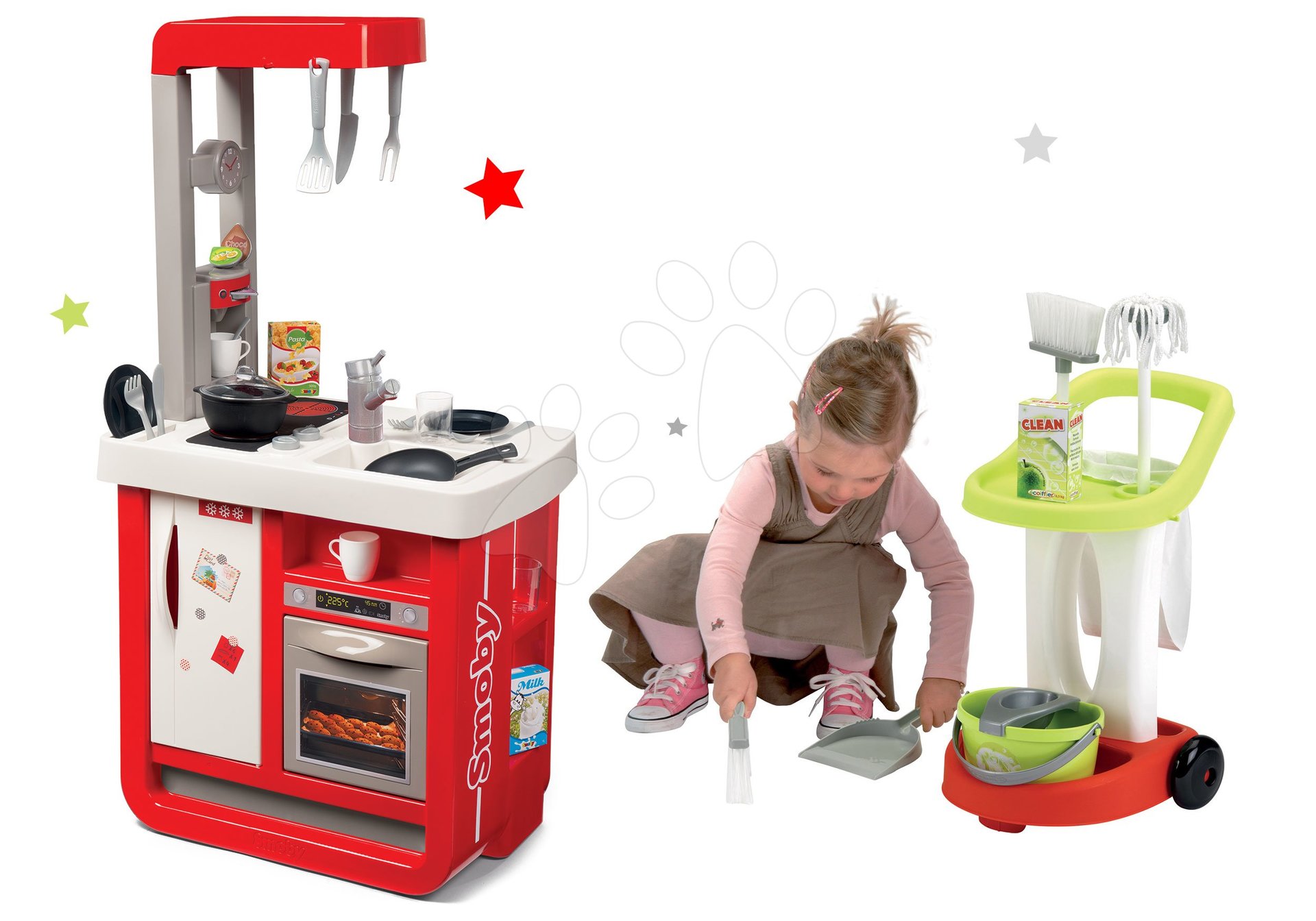 Set kuchynka elektronická Bon Appetit s kávovarom a upratovací vozík s vedrom