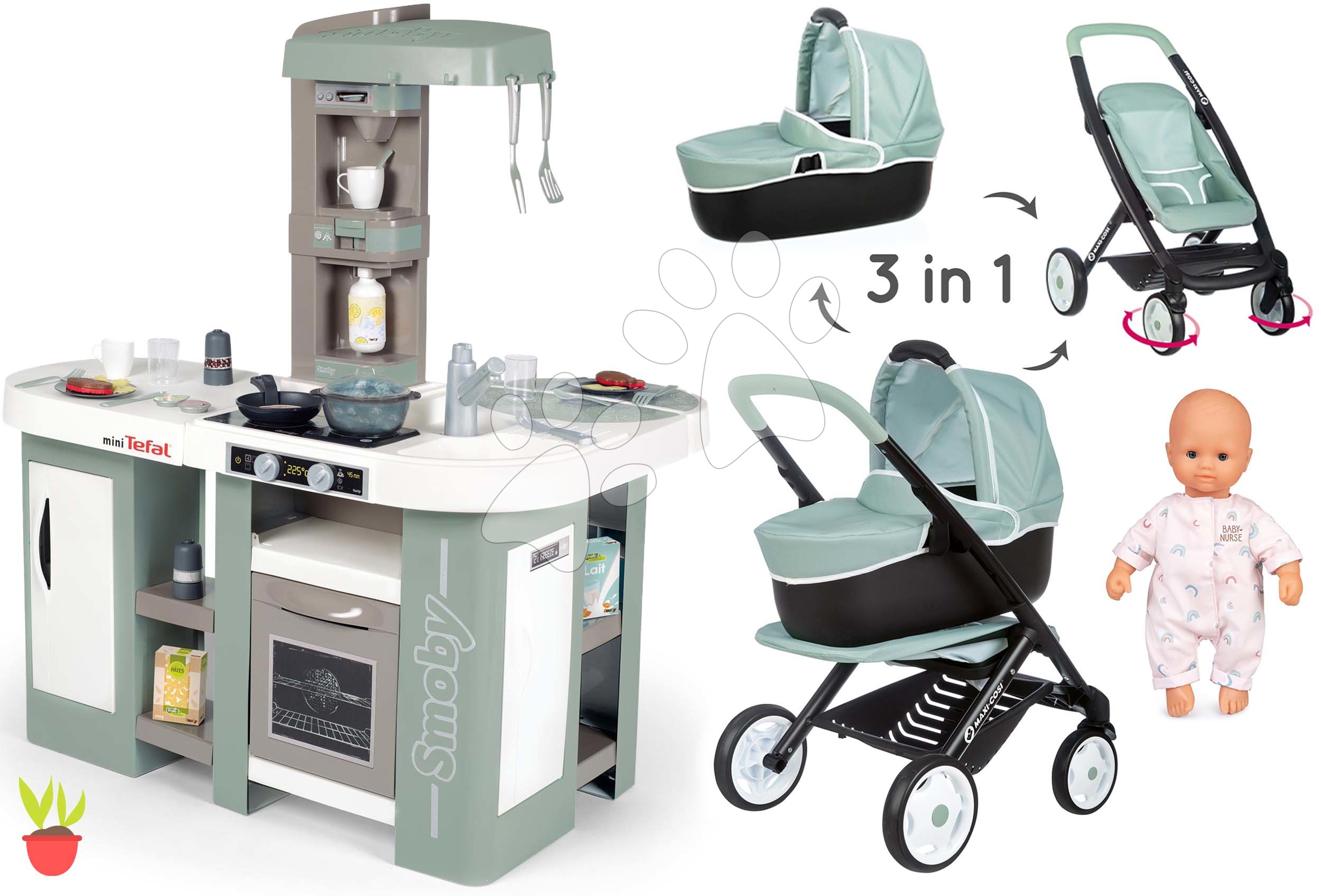 Kuchynka elektronická s bublaním Tefal XL Bubble a kočík trojkombinácia s 32 cm bábikou predstavujú vynikajúcu súpravu hračiek pre deti už od 3 rokov. Hračky v sete spolu dizajnovo a farebne ladia, vydržia vašim najmenším dlhé roky. Deti sa zabavia pri hre na šéfkuchárov, učia sa variť a dievčatá sa potešia multifunkčnému kočíku, v ktorom si povozia krásnu bábiku. Hravým spôsobom sa približujú svetu dospelých, získajú realistické zážitky, rozvíjajú si jemnú motoriku a logické myslenie.