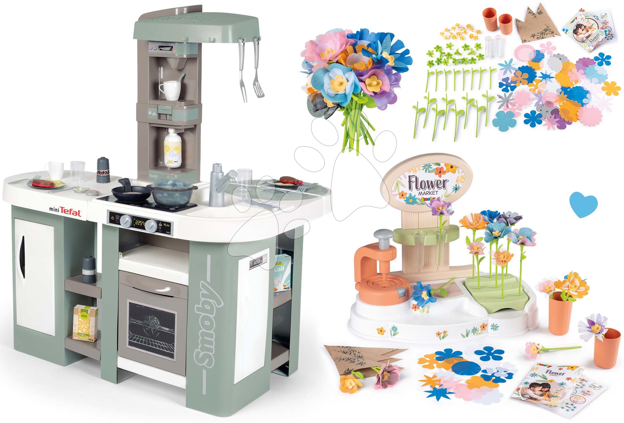 Kuchynka elektronická s bublaním Tefal XL Bubble a kvetinárstvo Flower Market s materiálom na výrobu kvetov predstavujú skvelú sadu hračiek pre kreatívne deti od 3 rokov. Hračky v sete spolu dizajnovo a farebne ladia, vydržia vašim najmenším dlhé roky. Deti si vyskúšajú hry na šéfkuchárov, učia sa pripravovať chutné jedlo a takisto si otvoria svoje vlastné kvetinárstvo, v ktorom budú pre zákazníkov pripravovať originálne kytice. Hravým spôsobom sa približujú svetu dospelých, rozvíjajú si jemnú motoriku, logické myslenie, učia sa improvizovať a objavia svoj umelecký talent. Set hračiek je vhodný aj pre hru viacerých detí, pričom si zlepšujú komunikačné schopnosti.