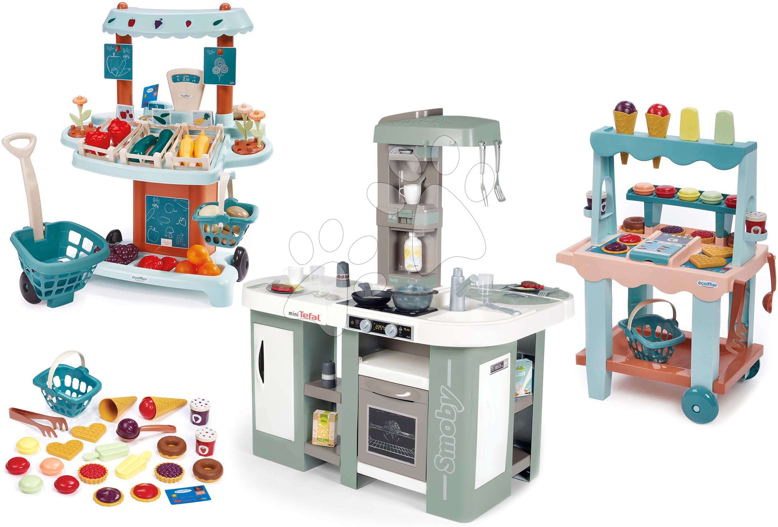 Set kuchynka elektronická s bublaním Tefal Studio Kitchen XL Bubble 360° a zeleninový Bio stánok Smoby a stánok so zmrzlinou a vafľami