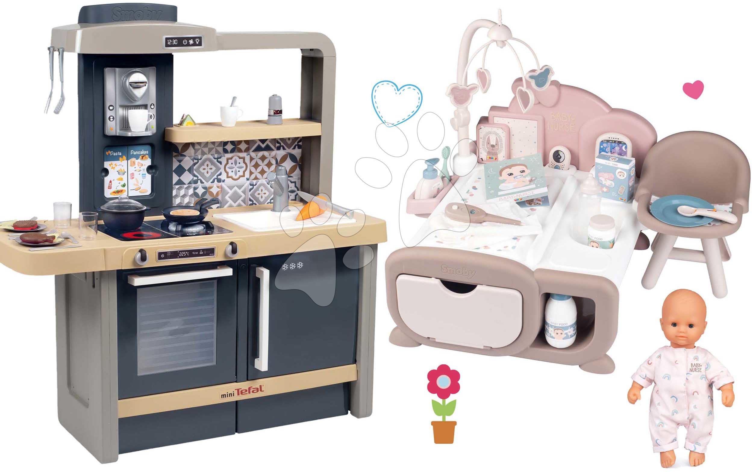 Elektronická kuchynka Tefal Evolutive New Kitchen od francúzskeho výrobcu Smoby dokáže rásť s dieťaťom od 3 do 8 rokov. Detská kuchynka je vyhotovená v originálnom francúzskom štýle a je plne prispôsobená potrebám malých šéfkuchárov. Deti sa pri varení zabavia na dlhé hodiny, veľkú radosť im spravia otočné gombíky s mechanickým zvukom cric-cric, magické cestoviny, ktoré dokážu meniť farbu po vložení do vody, mrkvička na krájanie a panvica s funkciou otáčania palacinky. Originálna súprava 31 doplnkov obsahuje aj kuchynské náradie, vidličky, nožíky, lyžičky, tanieriky, poháriky, šálky, cestoviny, soľničku, náplne do kávovaru, dokonca aj predpečenú rybičku a steak.